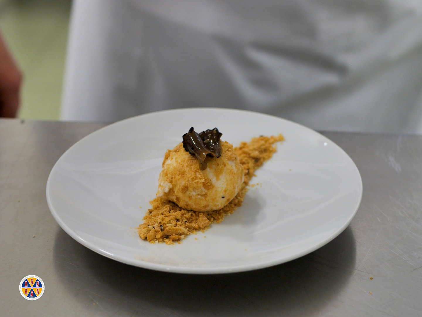 I gelati realizzati dallo chef Di Maria: Gelato alla crema pasticciera, gelato alla ricotta, gelato gastronomico al caciocavallo e tartufo, sorbetto al melograno e menta.