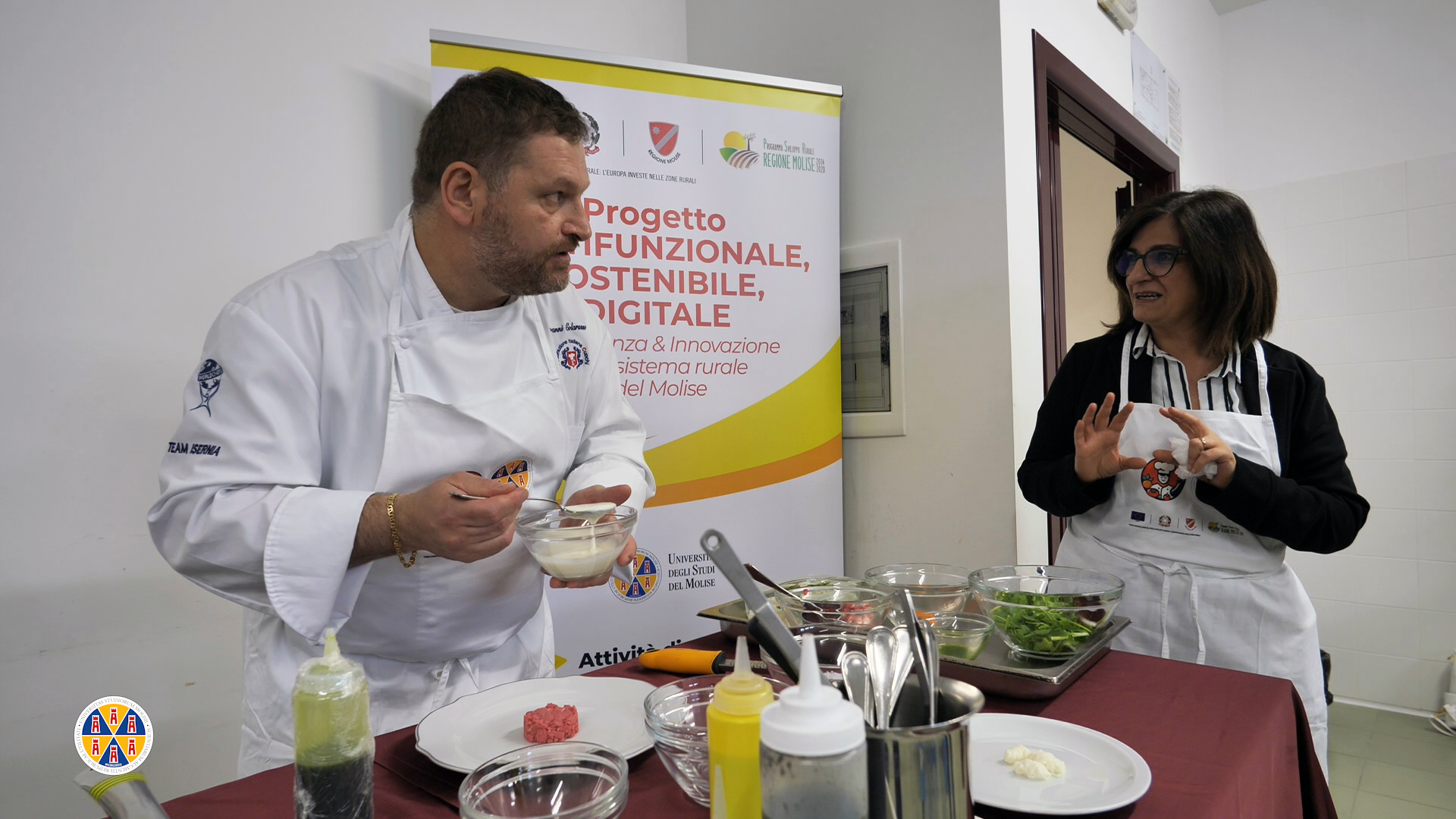 Ad illustrare i piatti, la prof. Mariantonietta Succi di Unimol, e ad accompagnare ed animare l’evento i proff. Unimol Maria Forleo e Vincenzo Giaccio.